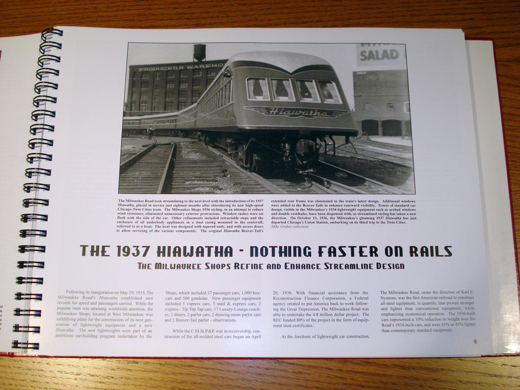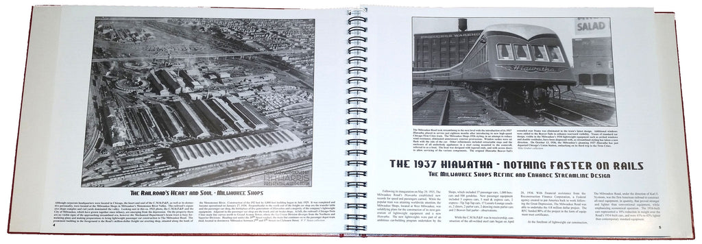 Hiawatha – Nothing Faster On Rails is a deluxe, hard cover, spiral bound book, detailing the ongoing development of lightweight passenger car construction by the Chicago, Milwaukee, St. Paul & Pacific Railroad.